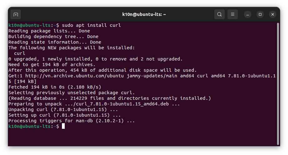 Tiếp theo hãy đảm bảo máy tính đã cài đặt hai package curl và git: