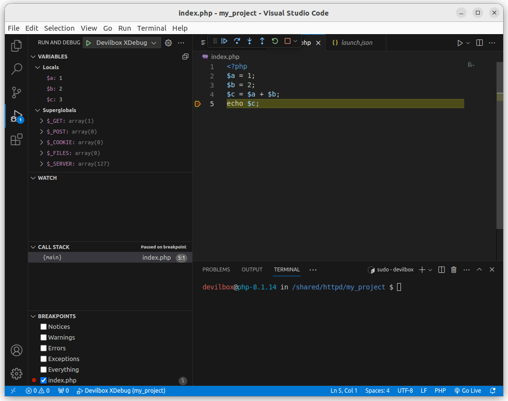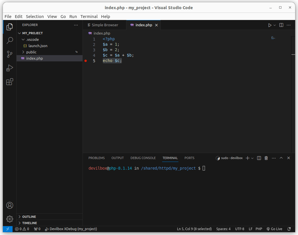 Trên đây là hướng dẫn cấu hình Xdebug cho Devilbox dựa trên hai phần mềm soạn thảo mã nguồn nổi tiếp là Visual Studio Code và PHPStorm. Cũng xin lưu ý, nền tảng mà tôi đang sử dụng để cấu hình là Ubuntu 22.04.2 LTS. Với các nền tảng khác, các bạn vui lòng tham khảo trên trang tài liệu tại đây. Còn nếu gặp vấn đề khi cấu hình có thể xem thêm phần thảo luận tại đây.