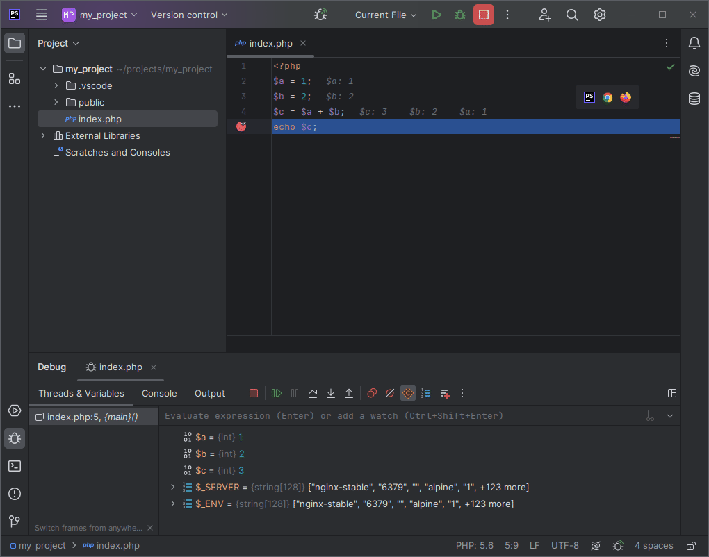 my_project: http://my_project.dvl.to. Quay lại PHPStorm và xem kết quả.